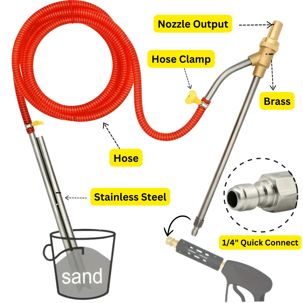Our Sandblasting Kit is the game-changer you’ve been looking for! It’s designed to save you time, money, and effort by turning your ordinary pressure washer into a powerful cleaning and restoration machine. Achieve pristine results on metal, concrete, brick, wood, and more—all from the comfort of your home or workshop.